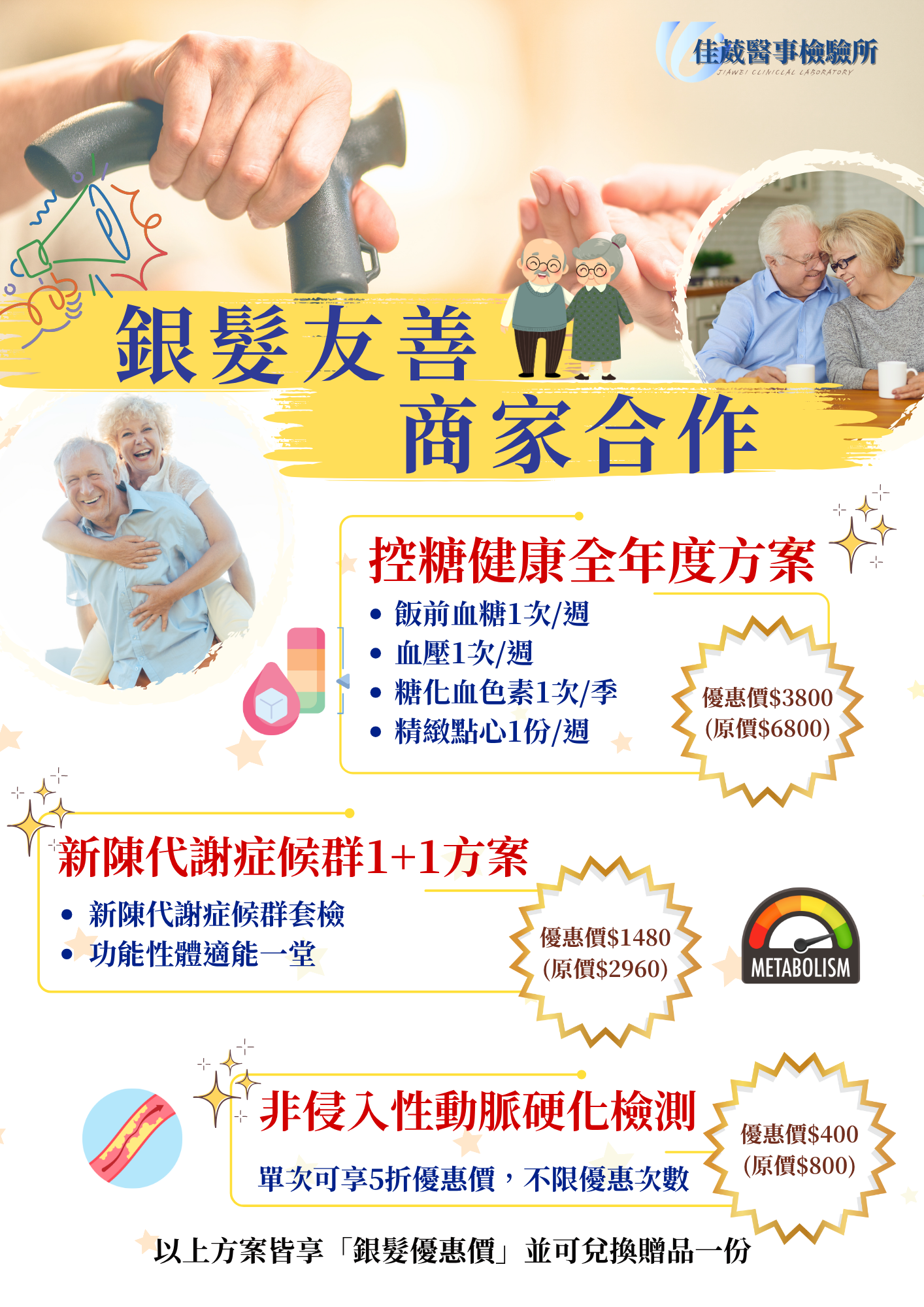 🌟 銀髮友善 · 健康無憂 🌟佳葳醫事檢驗所特別推出 「銀髮友善合作方案」,陪伴長輩守護健康、快樂生活!